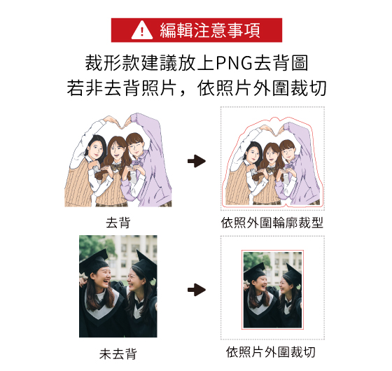高透光壓克力,厚度約3mm,針對圖文外圍輪廓做切割裁型,適合做為品牌或親朋好友小贈品。