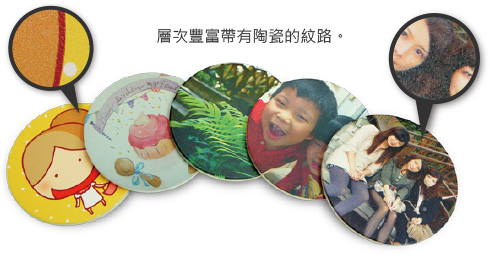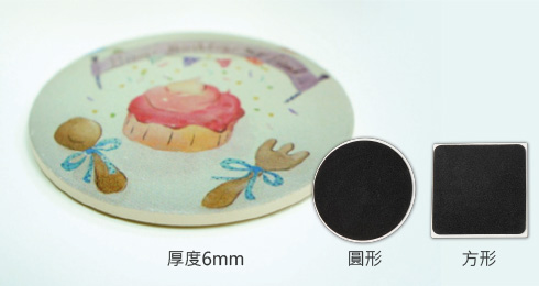 採用台灣鶯歌粘土粉末加上特殊的配方沖壓成型的高級陶瓷材質。經過攝氏1200度高溫燒製而成,圖案採用特殊釉料,具有毛細孔,擁有吸水功能,可吸走冷熱飲滲出杯外之水滴,除可保持桌面乾燥清爽外、兼具藝術欣賞價值。