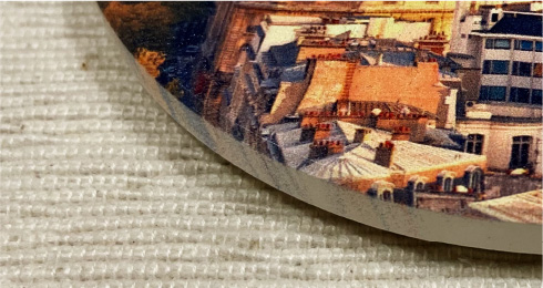 印滿版影像,杯墊側邊有飛墨溢散為正常狀況,不可因此原因退換貨。若想避免則建議調整影像尺寸,以非滿版印刷。