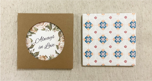 紙卡正面有圓形開洞,可秀出杯墊圖案,更添加包裝價值。