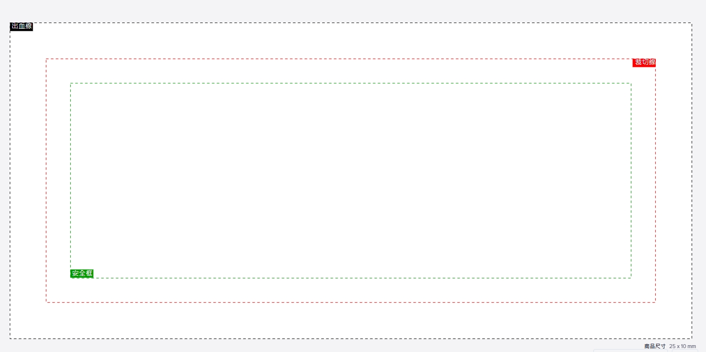 A:部分商品的設計區域中有「安全框(綠線)」、「裁切線(紅線)」、「出血線(黑線)」三個邊界線,設計稿圖面請務必填滿「安全框」、超出「裁切線」並確實延伸碰到「出血線」。
