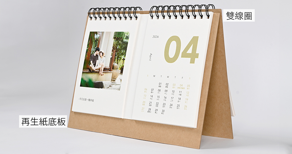 桌曆採雙頁分離式設計,將照片與月曆一分為二,可依心情自由搭配,打造專屬桌曆風格。