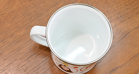 材質為鐵製,符合國際標準安全認證,可放入洗碗機,不可放入烤箱、微波爐。搪瓷杯盛裝酸性飲品可能溶出金屬物質,請避免盛裝咖啡、檸檬水等酸性飲品。清洗請避免使用鋼刷或菜瓜布,避免杯身磨損。