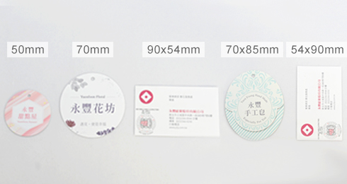 提供最常見的三種圓形與橢圓形吊牌尺寸,滿足不同商品與使用情境。