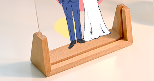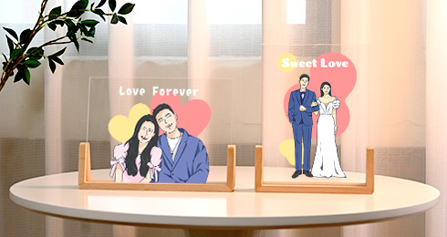 商品特色厚度0.3cm的高透光壓克力,可客製您喜愛的圖像及文字,留下最珍貴的回憶;下方搭配淺色實木底座,細緻木紋風格清新,適合成為家中的擺飾或婚禮上的點綴裝飾。