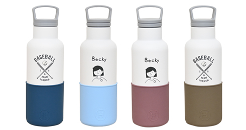結帳時可挑選 4 種顏色瓶套,圖片由左而右分別是「海軍藍、天空藍、玫瑰紅、摩卡棕」,自由選擇瓶套搭配設計,成就獨一無二的個人風格。