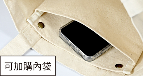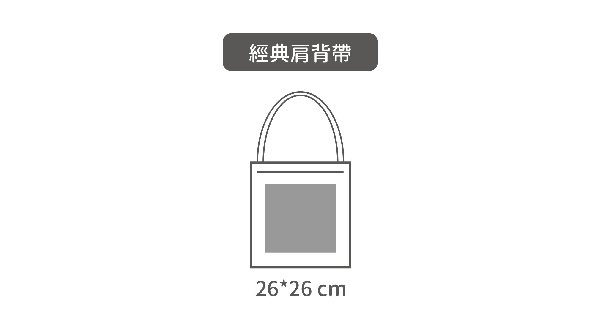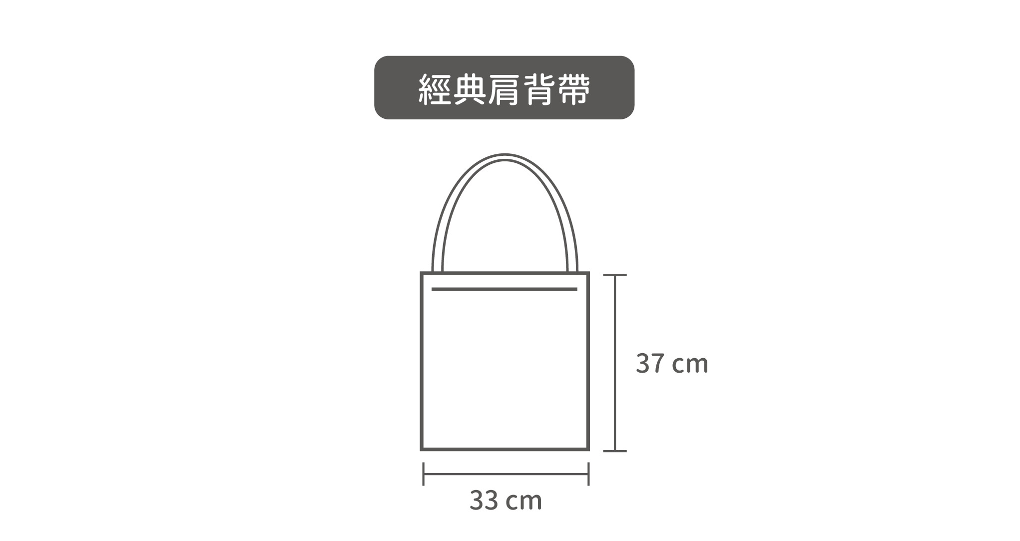 經典肩背袋:33 x 37cm,100%純棉帆布(12盎司),可加購內口袋。