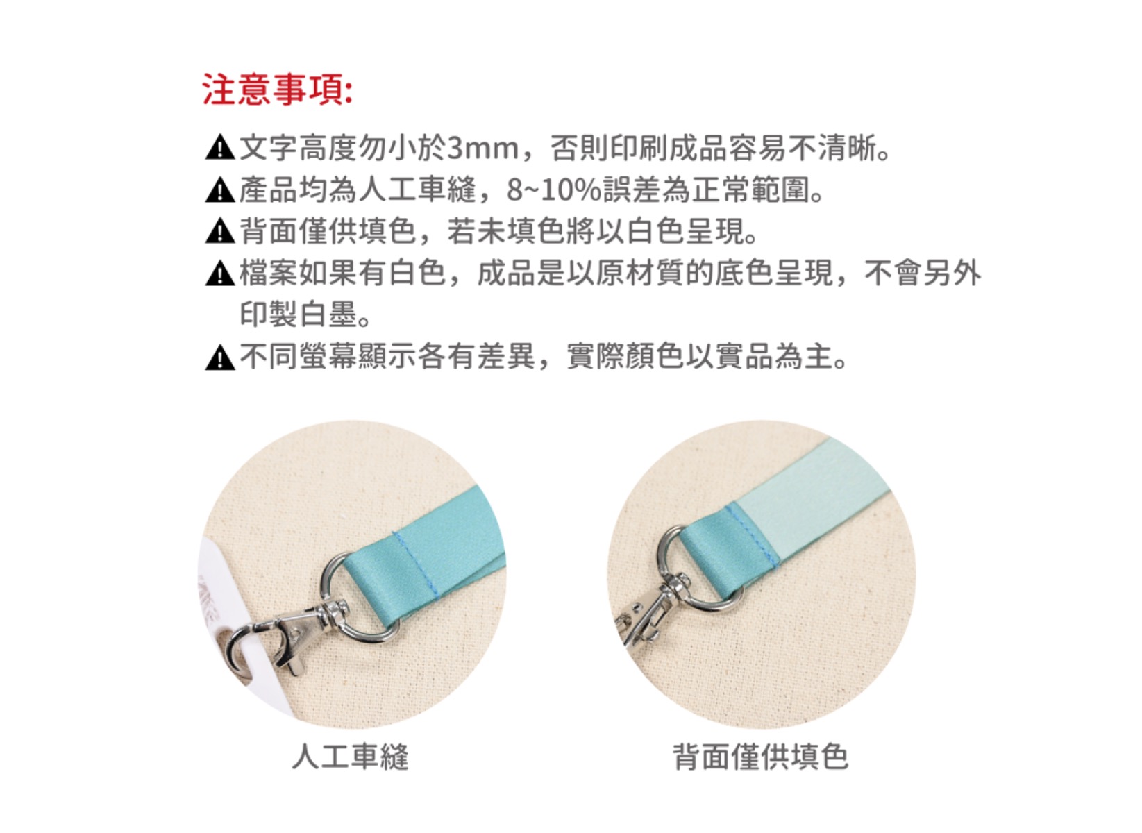 識別證帶內裡可印上專屬色系,創造兩種顏色的鮮明色澤。
