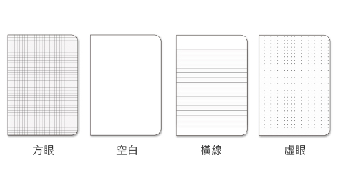 橫線適合文字書寫紀錄,虛眼適合繪圖,方眼適合專業設計,空白每頁都能有不同用途