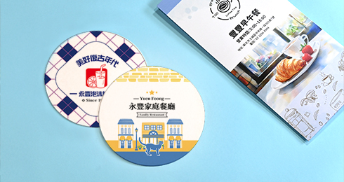 • 圓形紙杯墊:外形柔和,具設計感,適合搭配各式飲品,常見於餐廳、酒吧或高級場合。