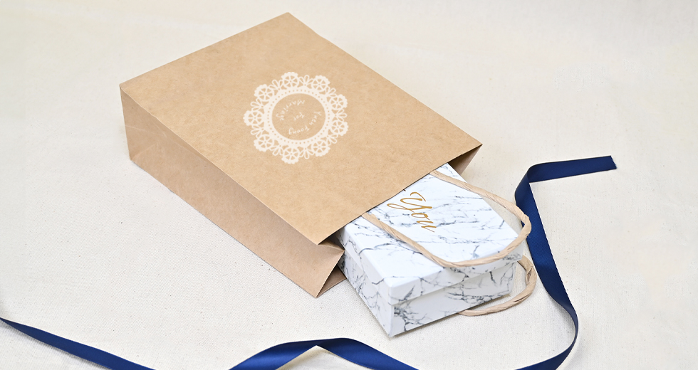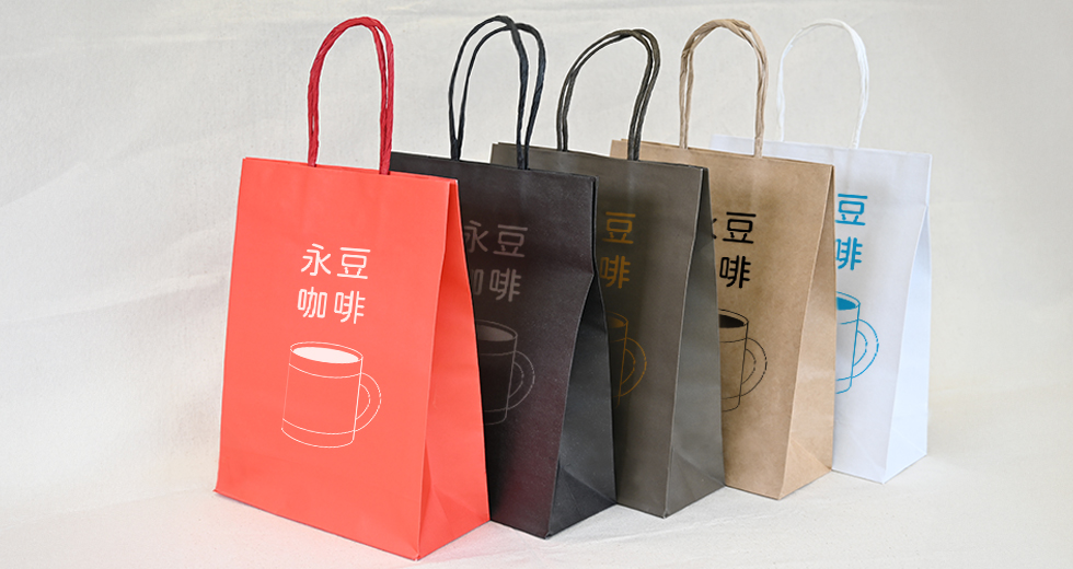 我們提供5 款經典的顏色紙袋,可自行選擇搭配合適的印刷色,無論是印上品牌LOGO或是一句重點文案,都相當亮眼吸睛。