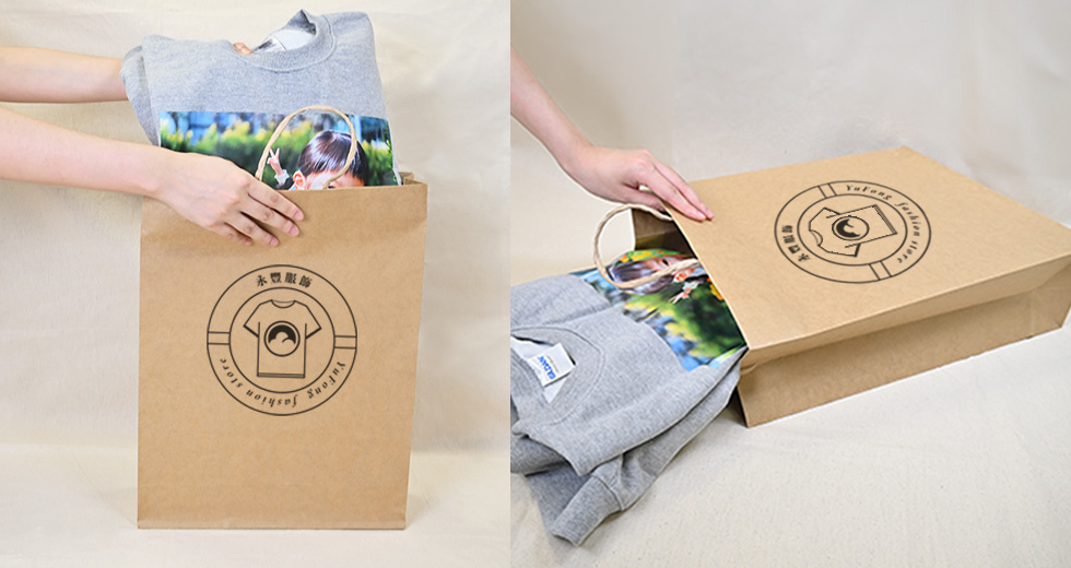 本商品是以成品紙袋進行印刷,紙袋正反面皆印上同一個圖案,無法在兩面印上不同圖案。