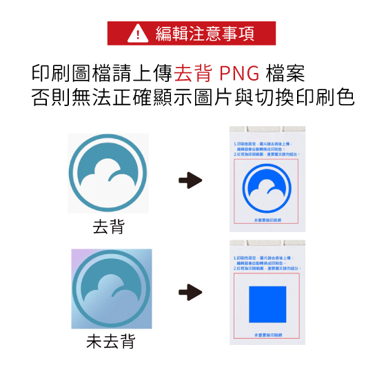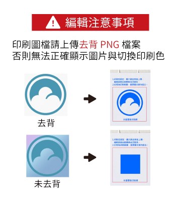 注意:請上傳去背 PNG 圖檔,否則系統會無法讀取圖檔版面,會將整張圖檔都變色。