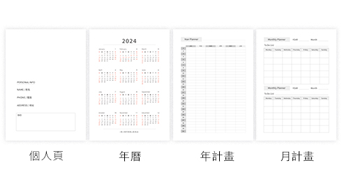 A6尺寸: 個人頁、2025 & 2026年曆、2025 & 2026年計劃表、 GOALS 。