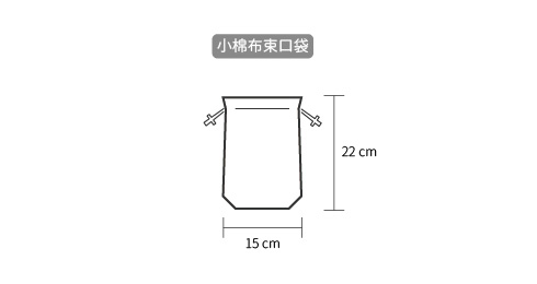 小棉布束口袋:15 x 22 x 底寬4cm,100%純棉布(8盎司)。