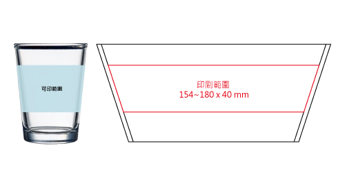 154-180(斜身)*40mm ,除了上下須預留空間,杯子全外觀面皆可印刷。