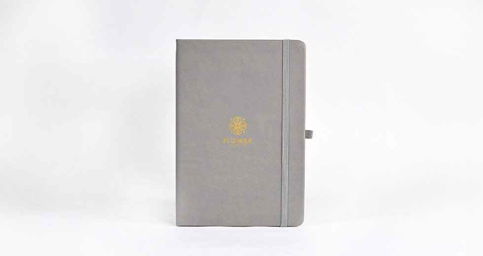 可在正面選擇壓印、燙金、燙銀任一種加工方式印上喜歡的圖案。壓印方式會在皮革上產生顏色深淺變化與立體效果,低調質感更有層次。燙金、燙銀的金屬光澤質感,為筆記本增添微奢華的精品質感。