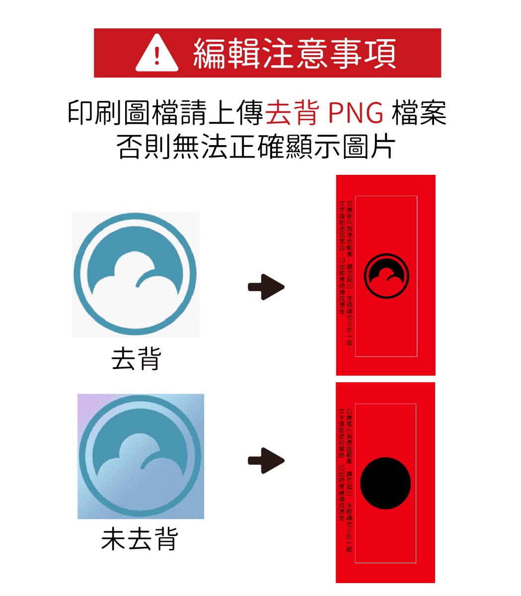 ■傳統燙金紅包袋可編輯一款圖案,若需要多款圖案可透過重覆下單方式 (每款最少需印製30張)。
