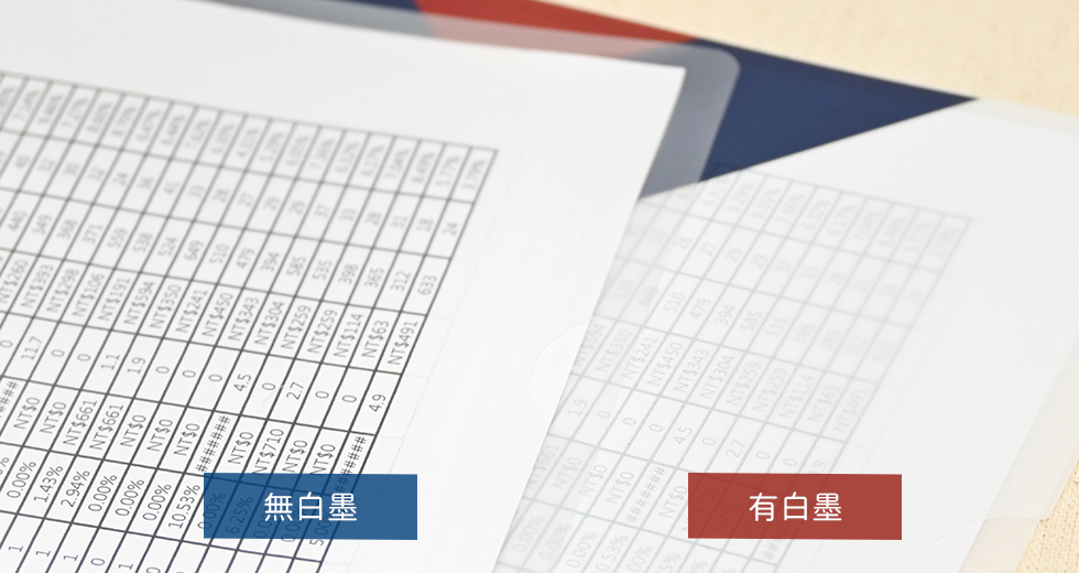 無印白墨圖案較透明,有印白墨圖案較清楚、飽和。