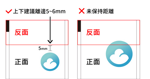 • 正面印製重要圖文時,上下建議離邊緣5~6mm。