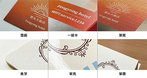 雪銅:紙張表面無紋路潔白平滑,印刷對比鮮明光滑亮面